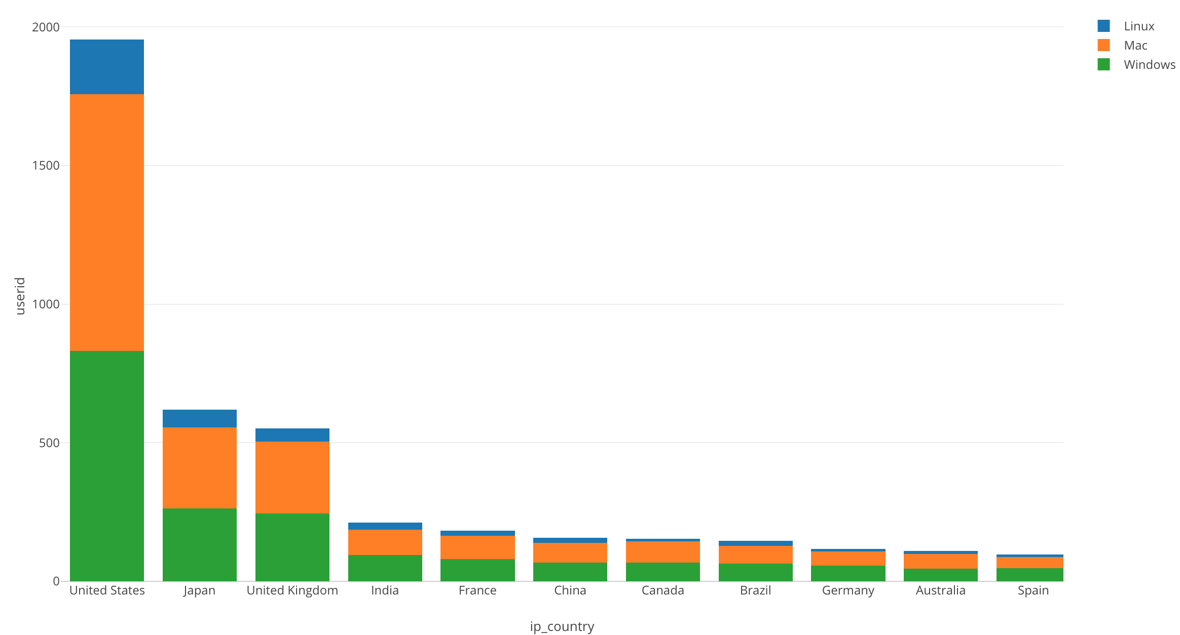 In Central Asia, Mac users and Windows users are split 50/50.