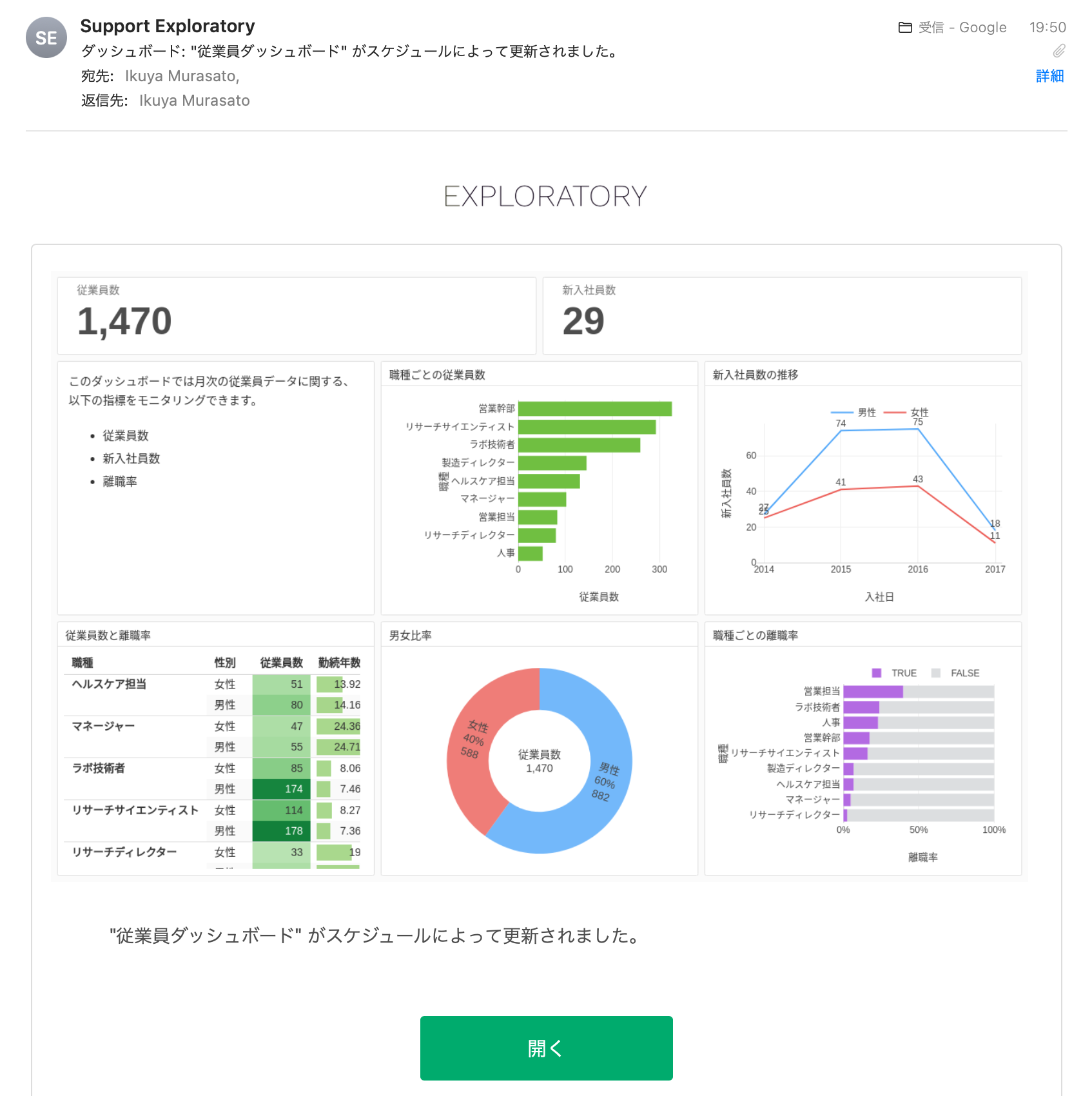 通知メールに購読すると、ダッシュボードが更新される度に、プレビューつきのメールが届くようになります。