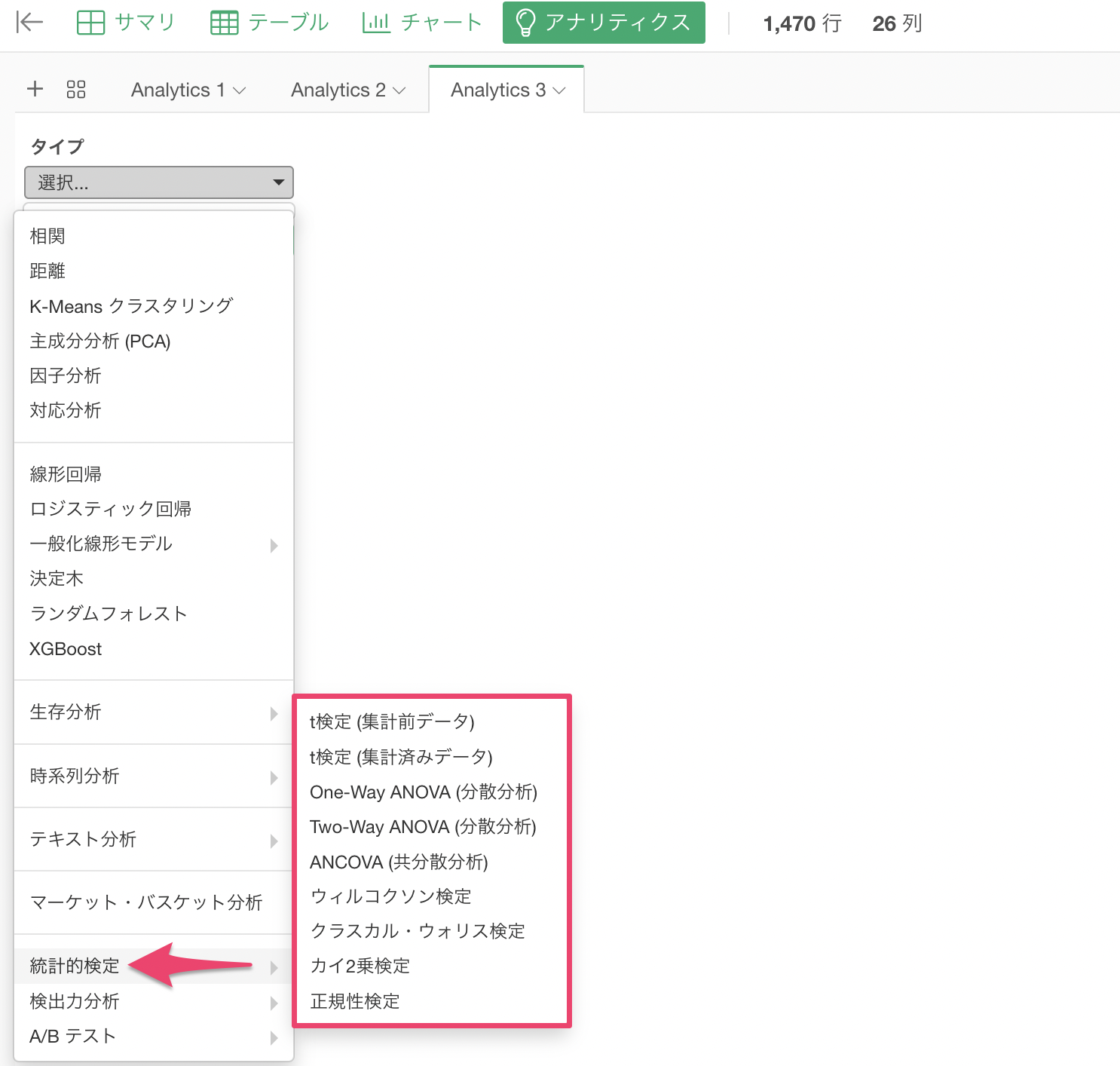 Exploratoryでは、さまざまな仮説検定の手法をサポートしています。