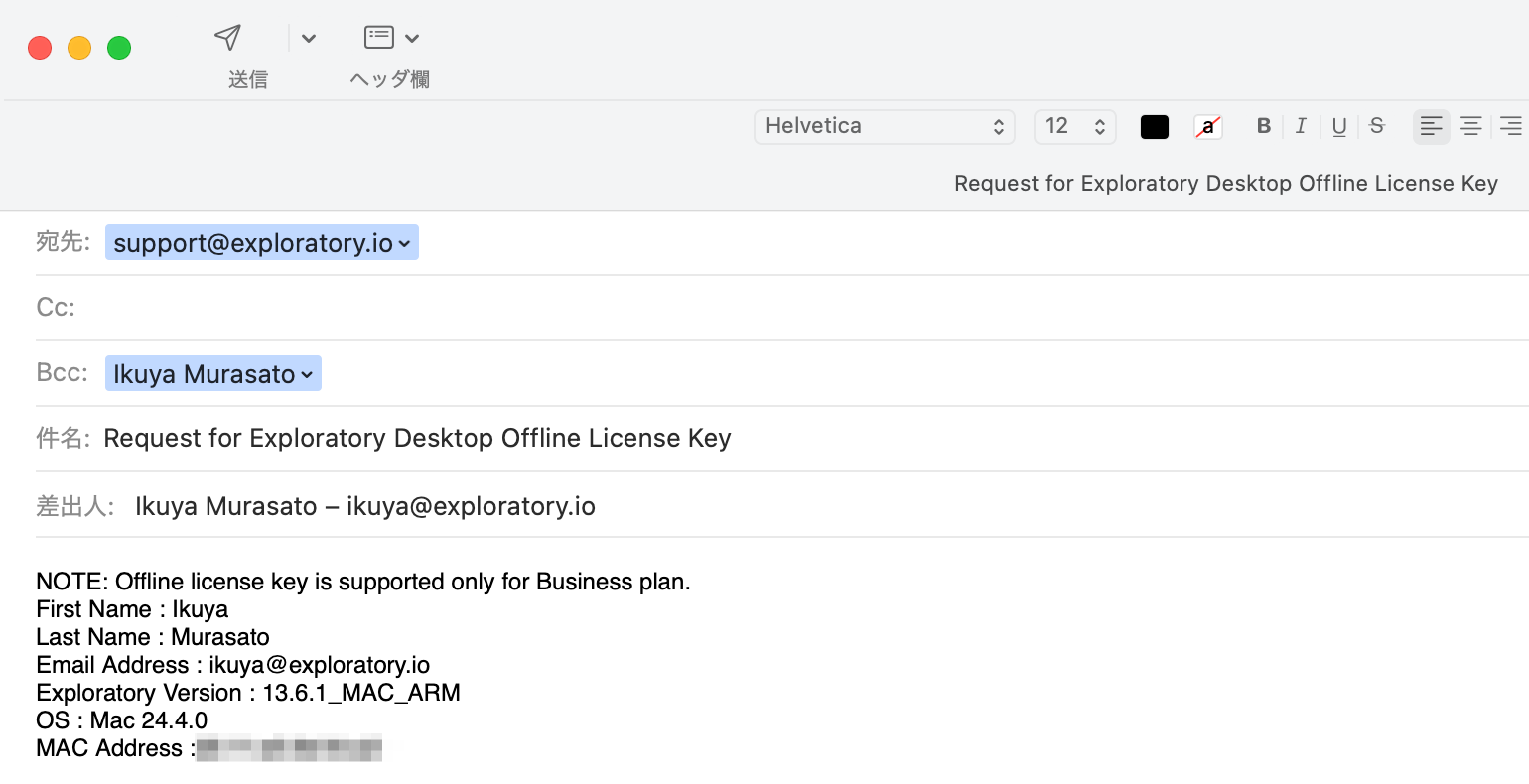 To use Exploratory Desktop in offline mode, you need to issue an offline license key yourself. If the computer you are using is not connected to the Internet, you can send us the required information via email, and we will issue an offline license key for you.