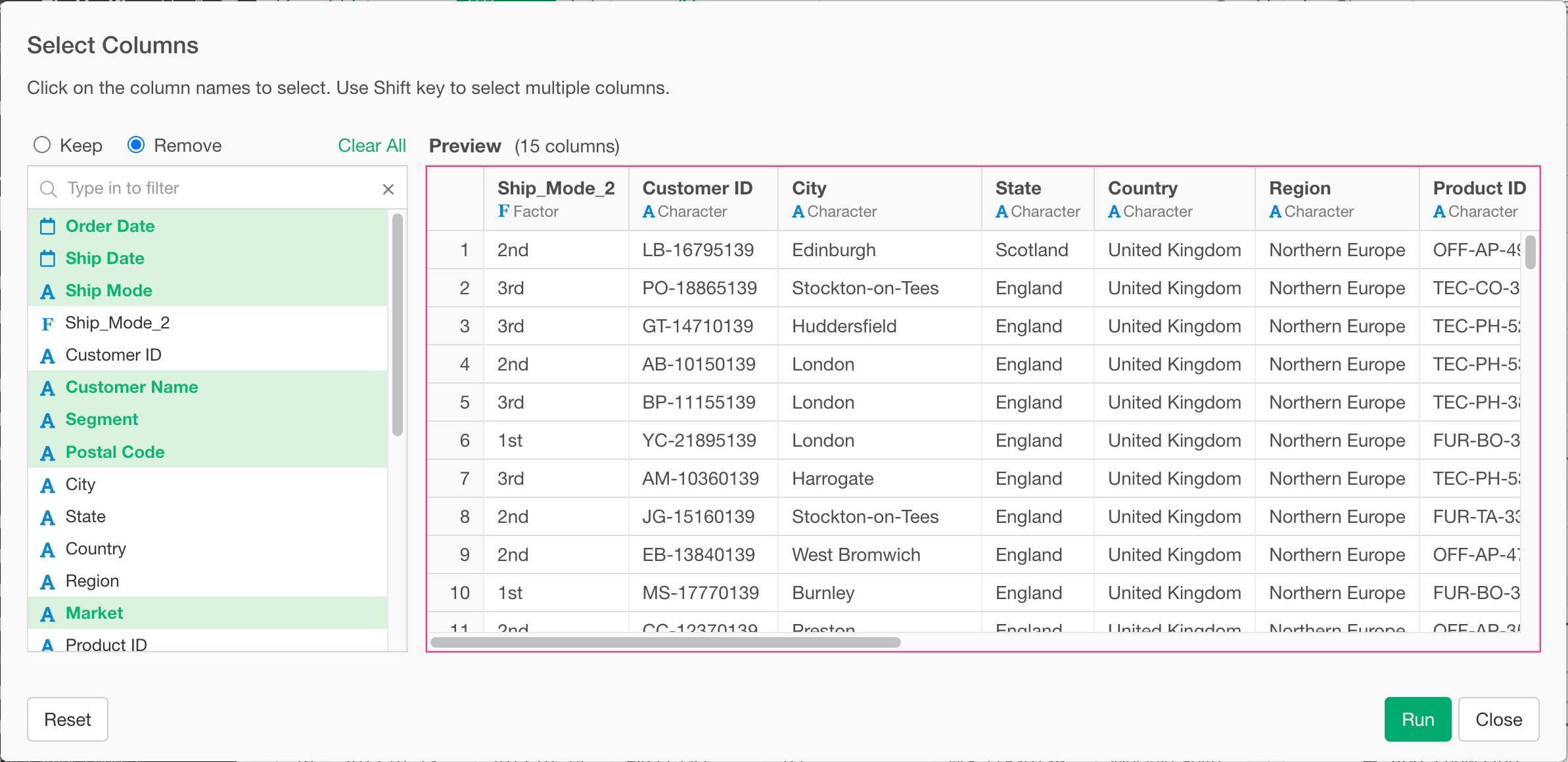 When you select "Select Columns," you can keep only the selected columns without opening the column selection dialog. Similarly, when you select "Remove Columns," you can remove only the selected columns without opening the column selection dialog.