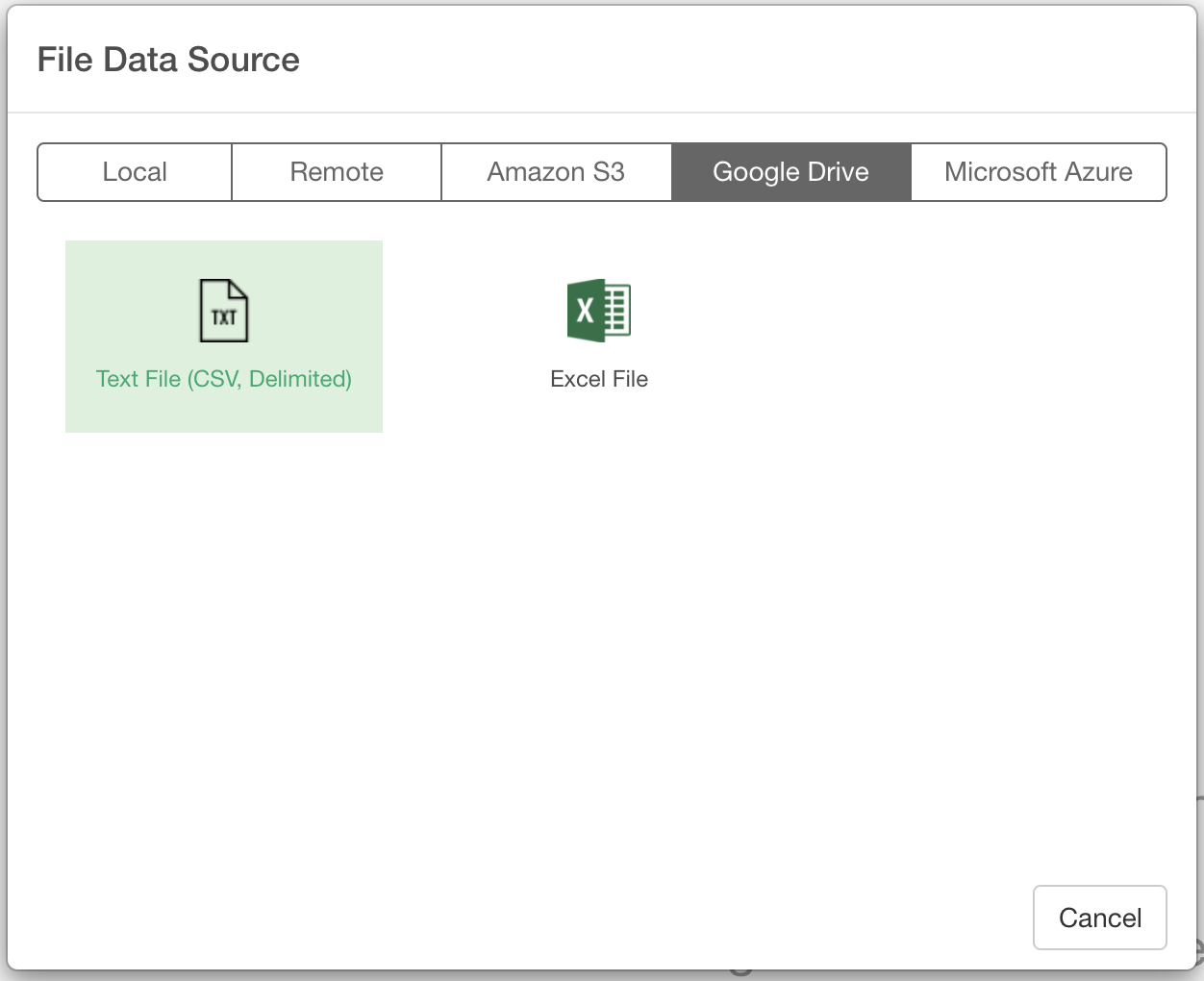 Then select the "CSV" or "Excel" icon under Local tab on the File Data Source dialog.