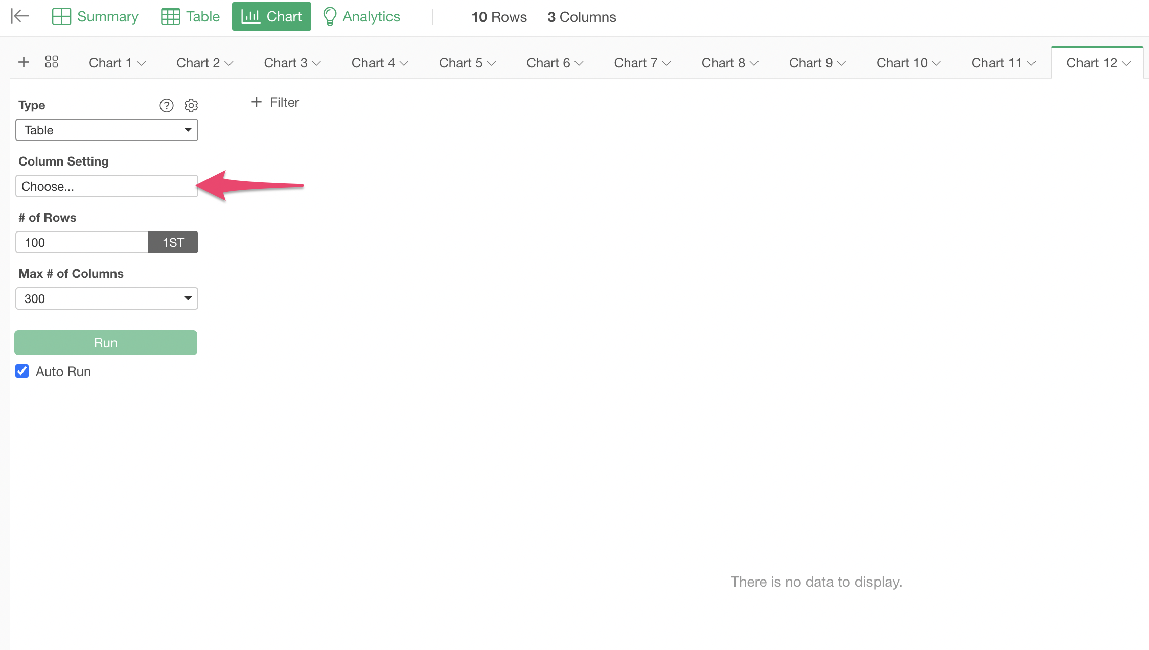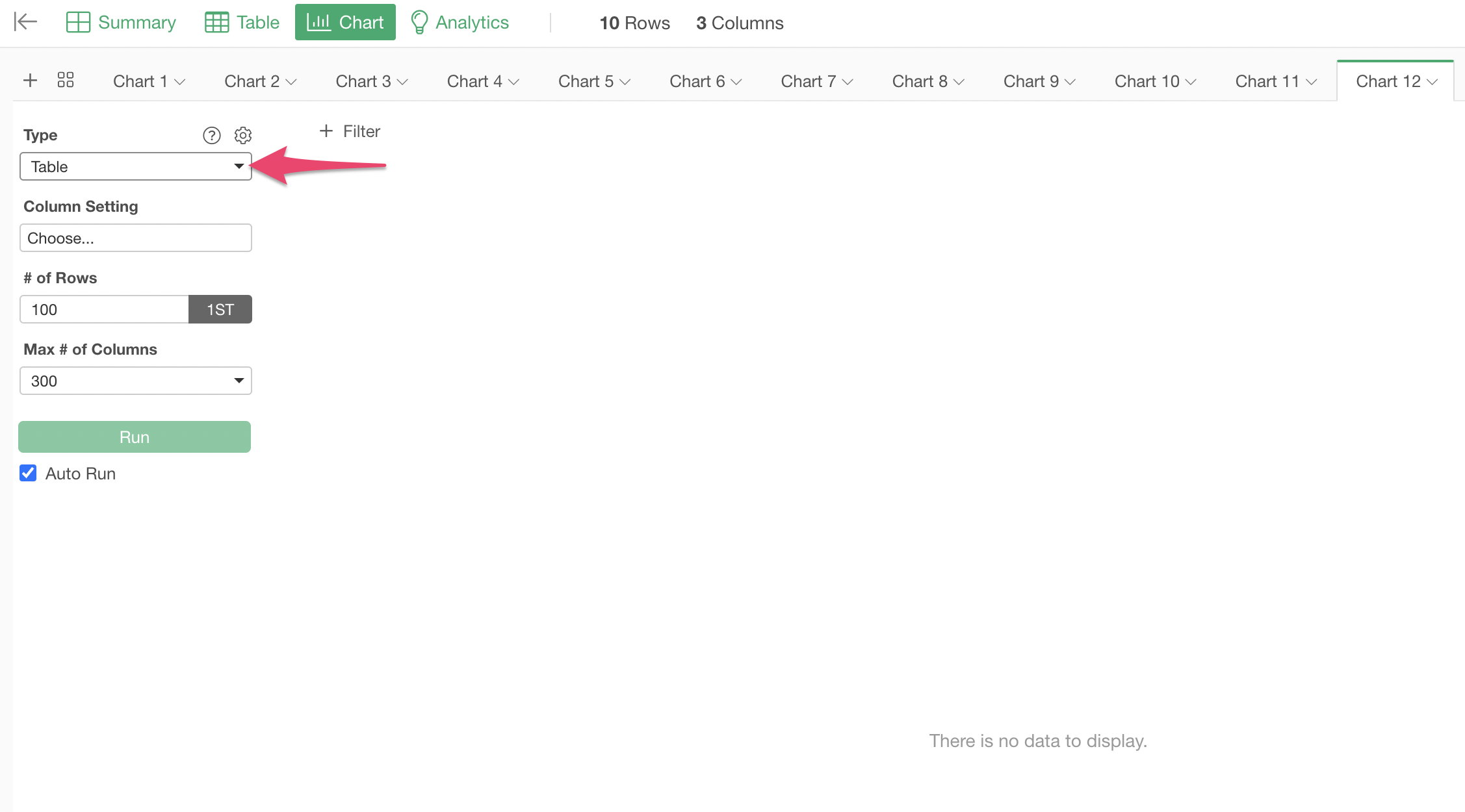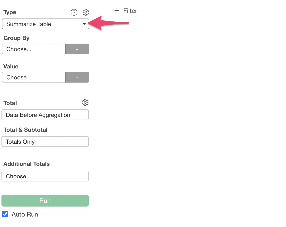 Select “Summarize Table” or “Pivot Table” from the Type dropdown.