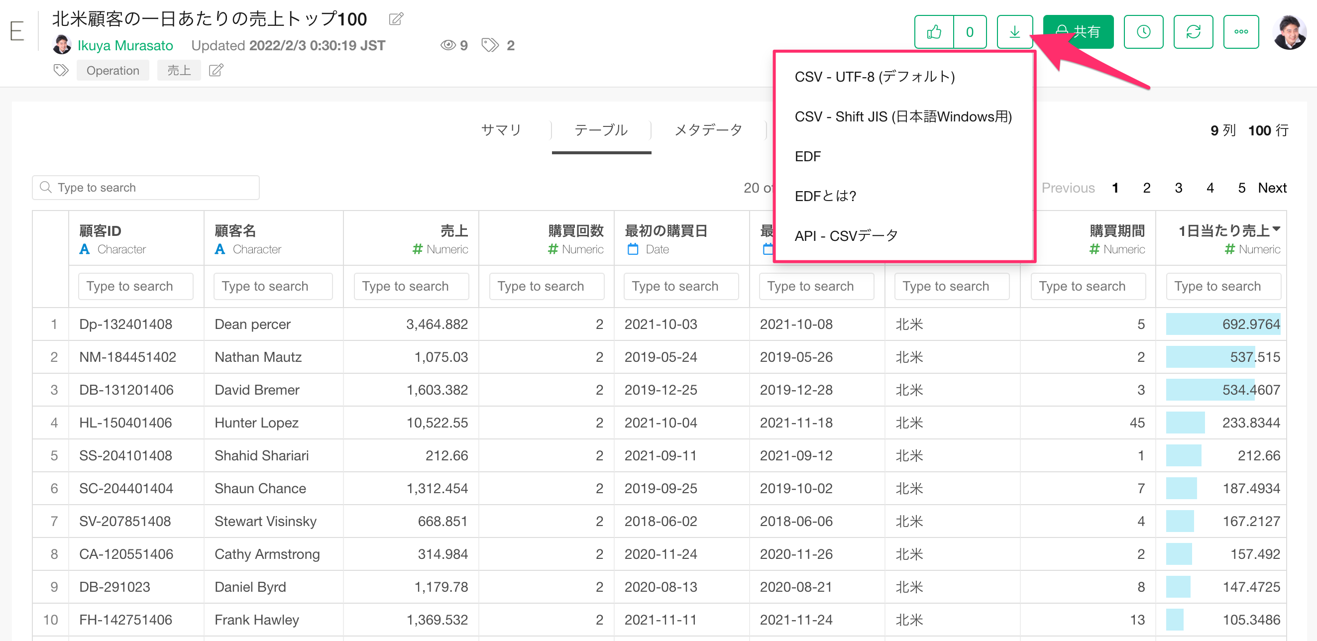 データの概要や列ごとの詳細情報をメタデータとして記録しておくことで、データを作った人がデータを使う人に効率的にデータの意味を伝えることができます。