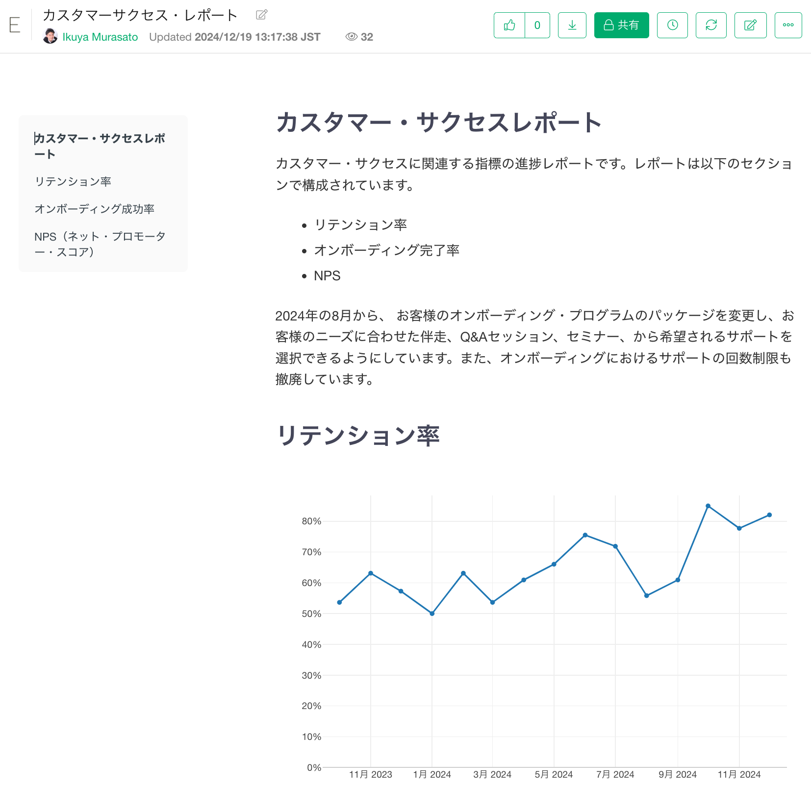 ノートエディターが立ち上がったら、文章を記述し、自分にアクセス権があるチャートを挿入できます。