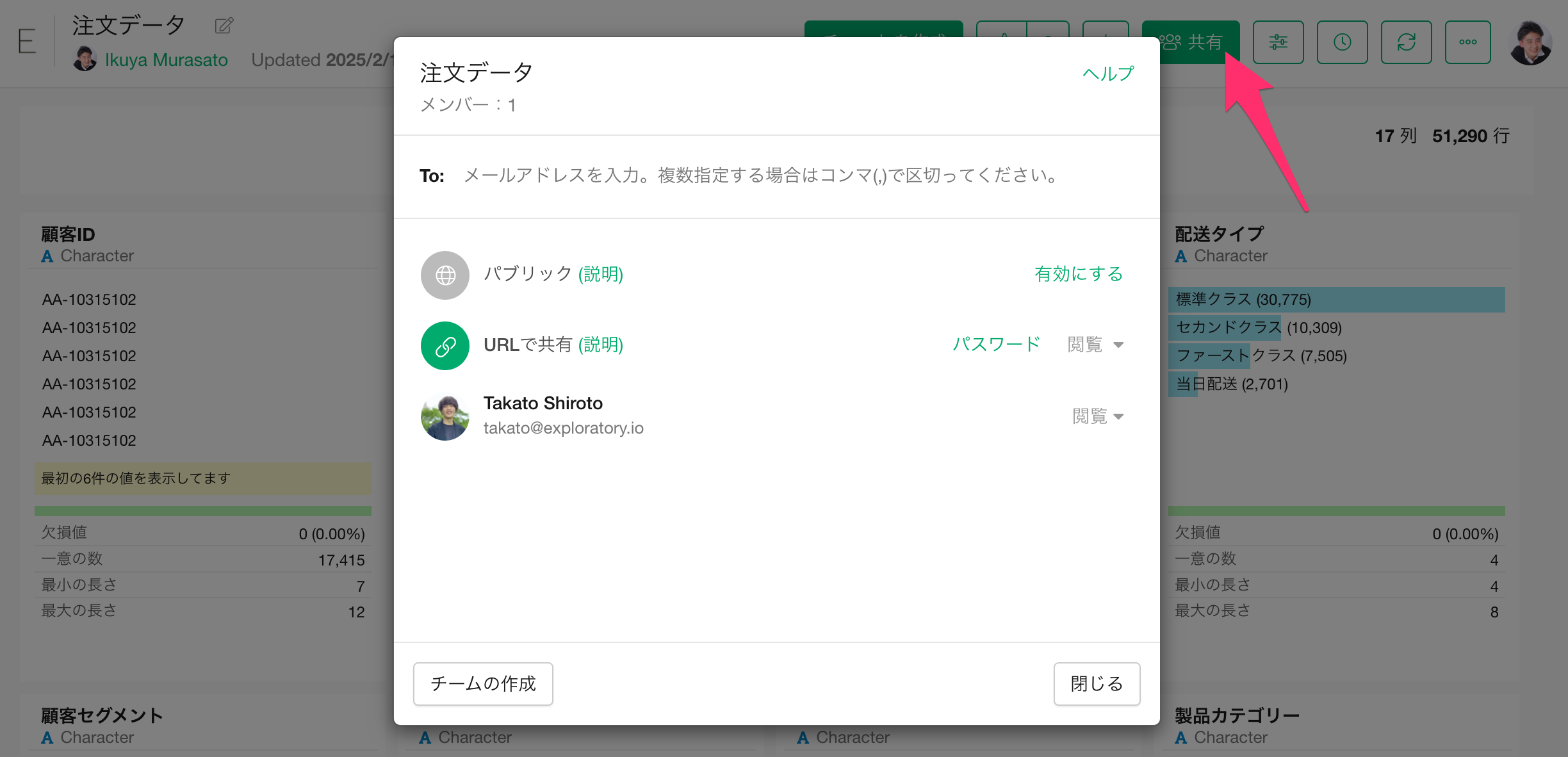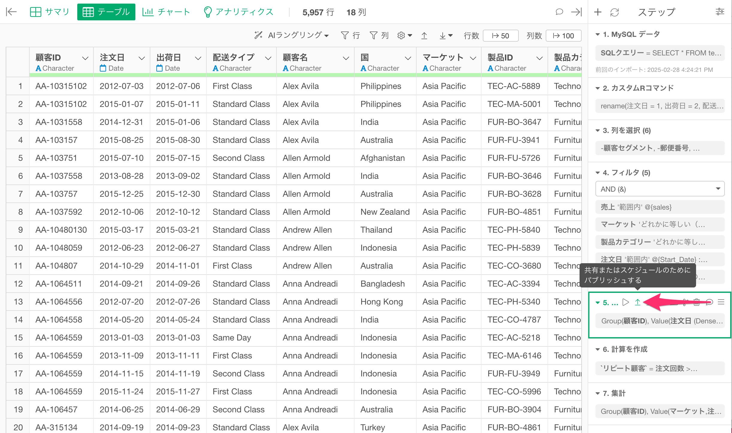 どの時点のステップのデータも、Exploratoryサーバーにパブリッシュして他のメンバーと共有することができます。