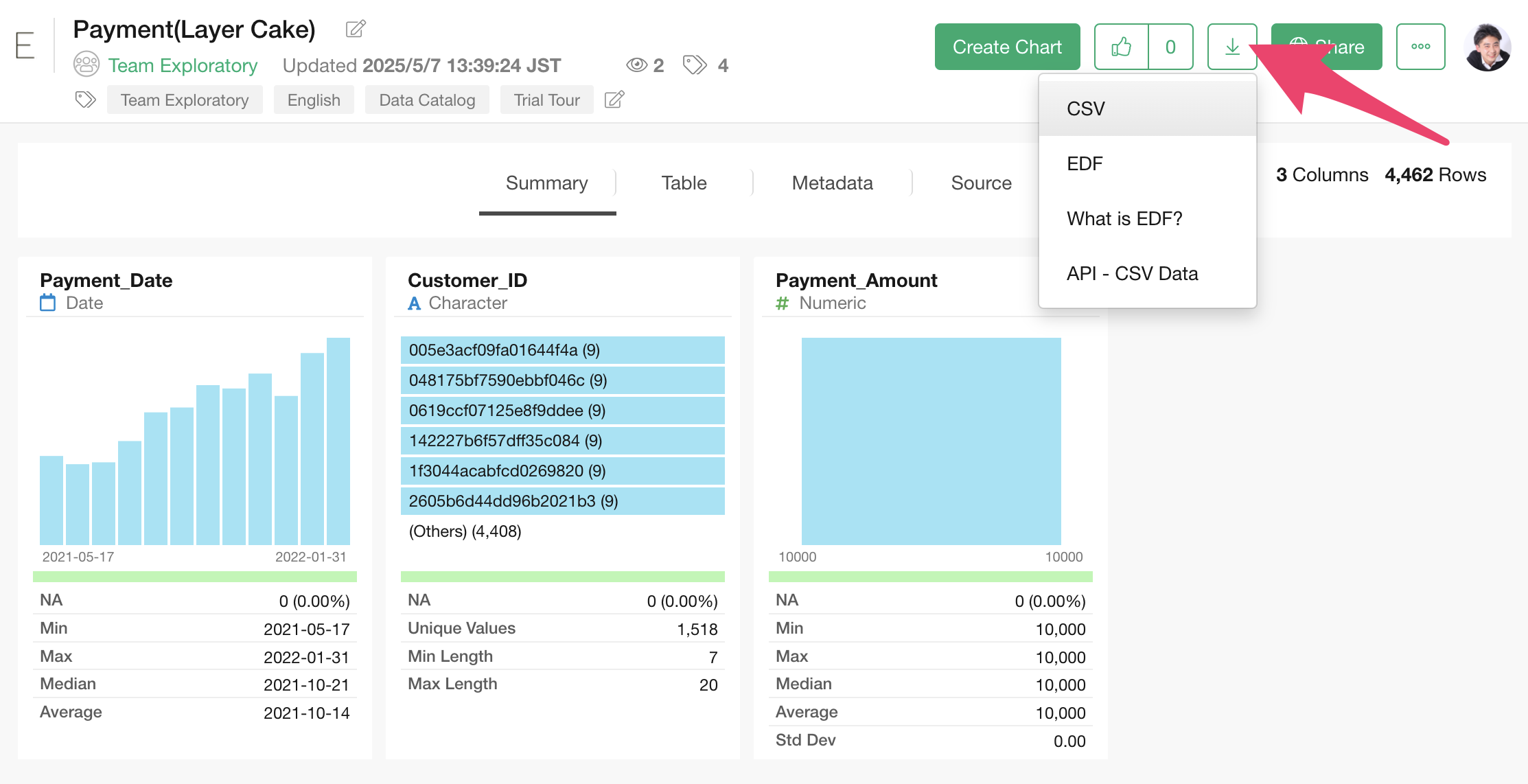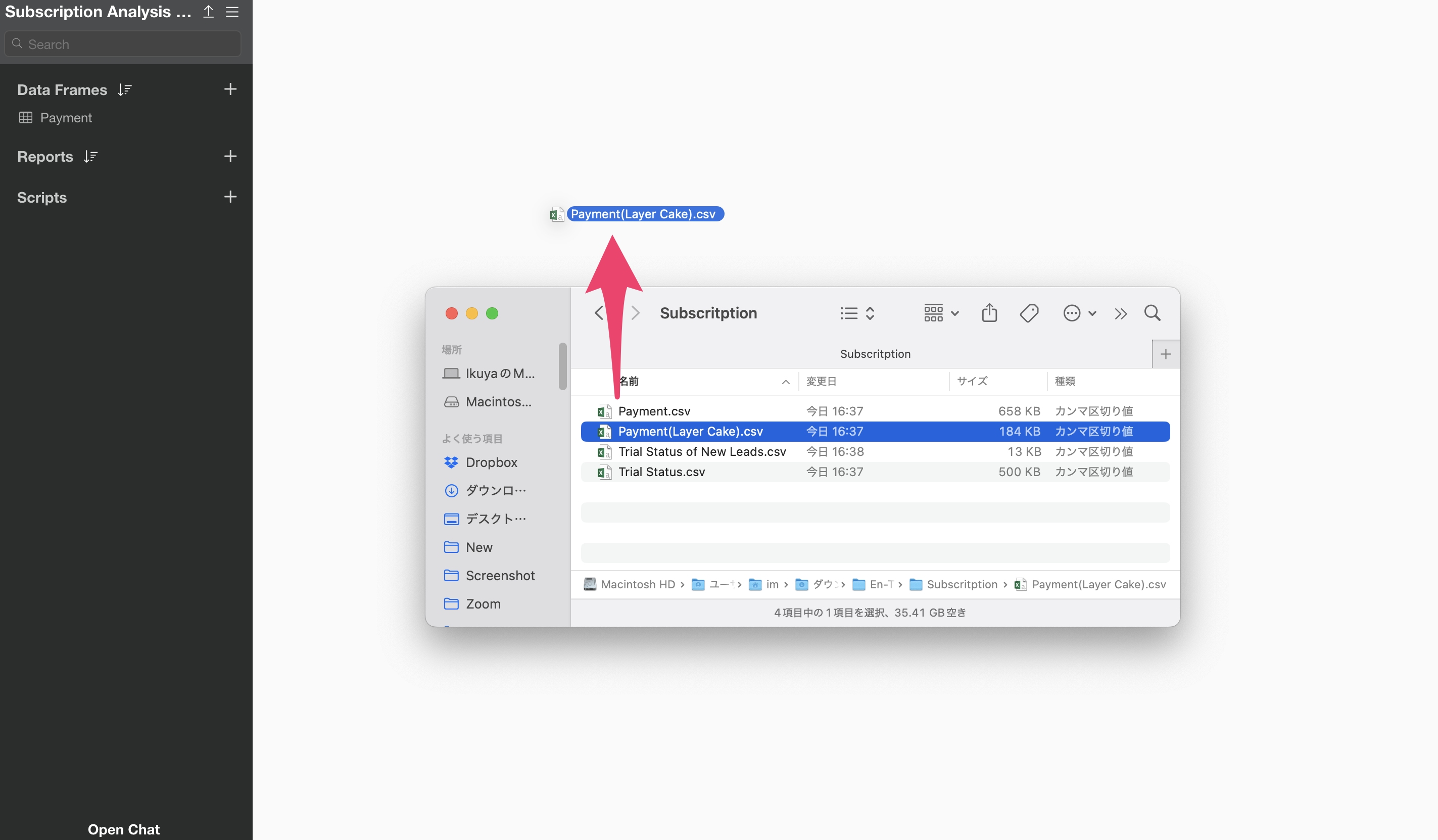Once you’ve downloaded the payment data, open the download folder and drag and drop it onto the Exploratory screen.