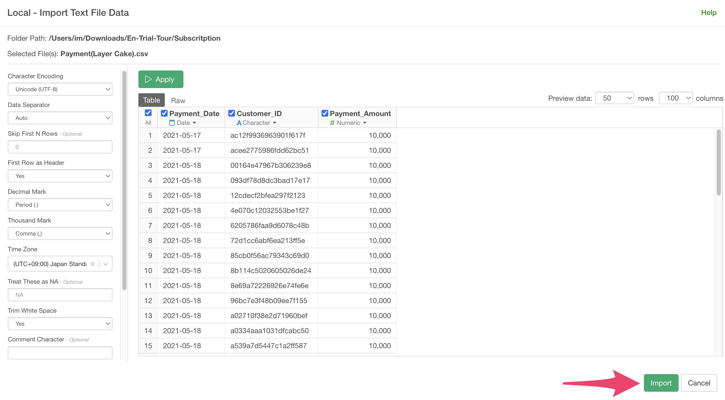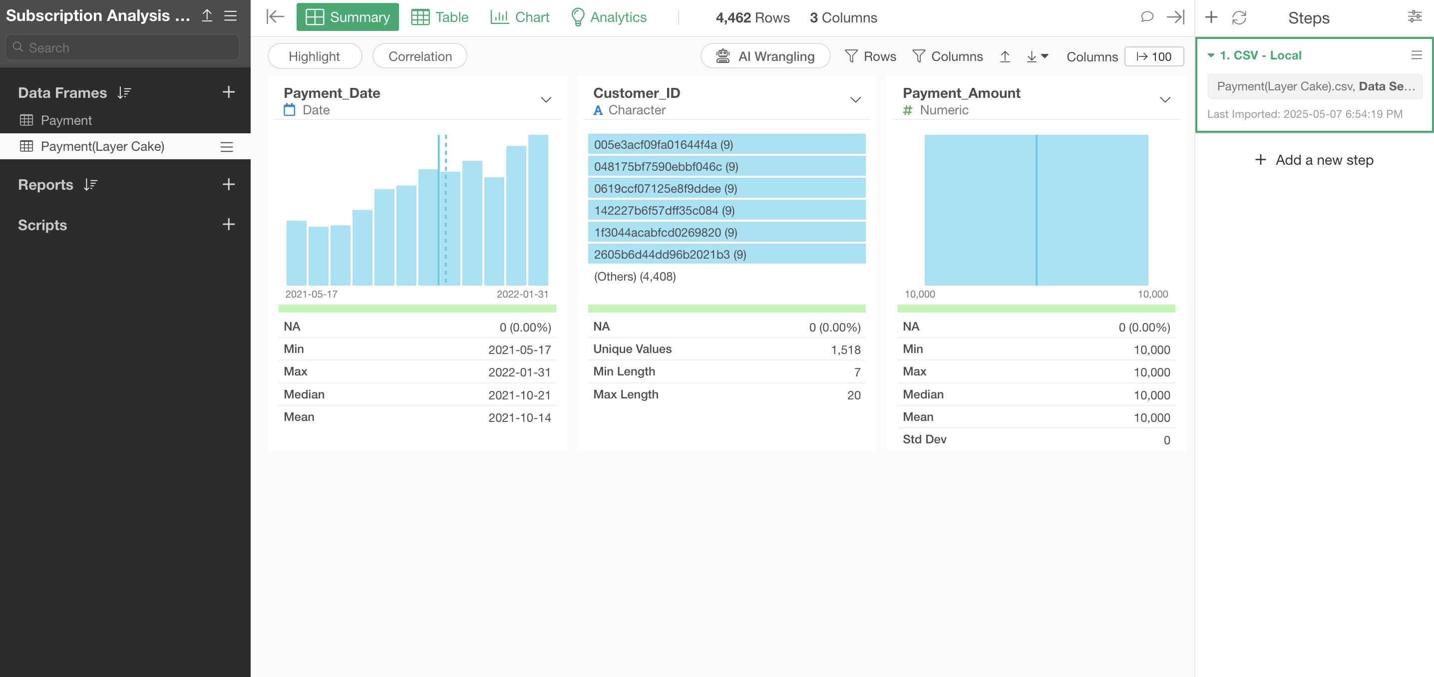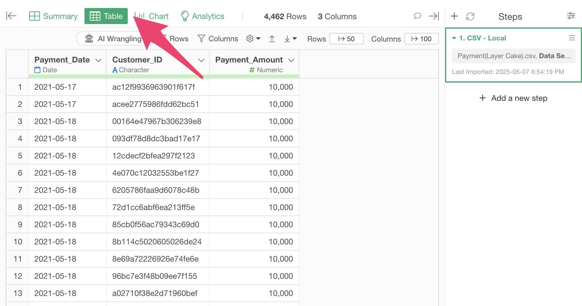 In the following section, we’ll introduce how to add a column for the first payment date for each customer using the “UI”. If you’ve completed this process, please proceed to the “Creating a Layer Cake Chart” section.