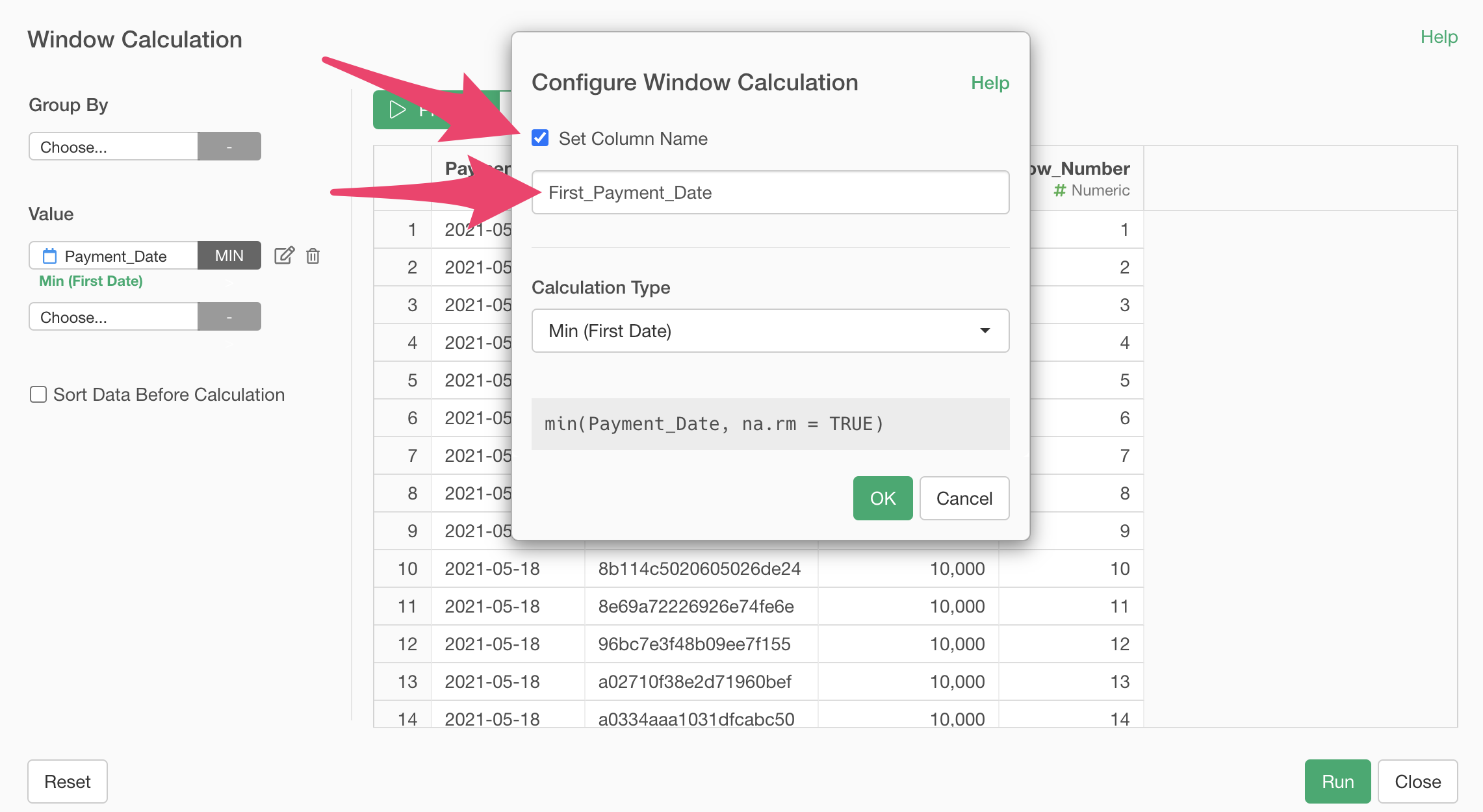 Next, check “Set Column Name” and set the column name to “First_Payment_Date”.
