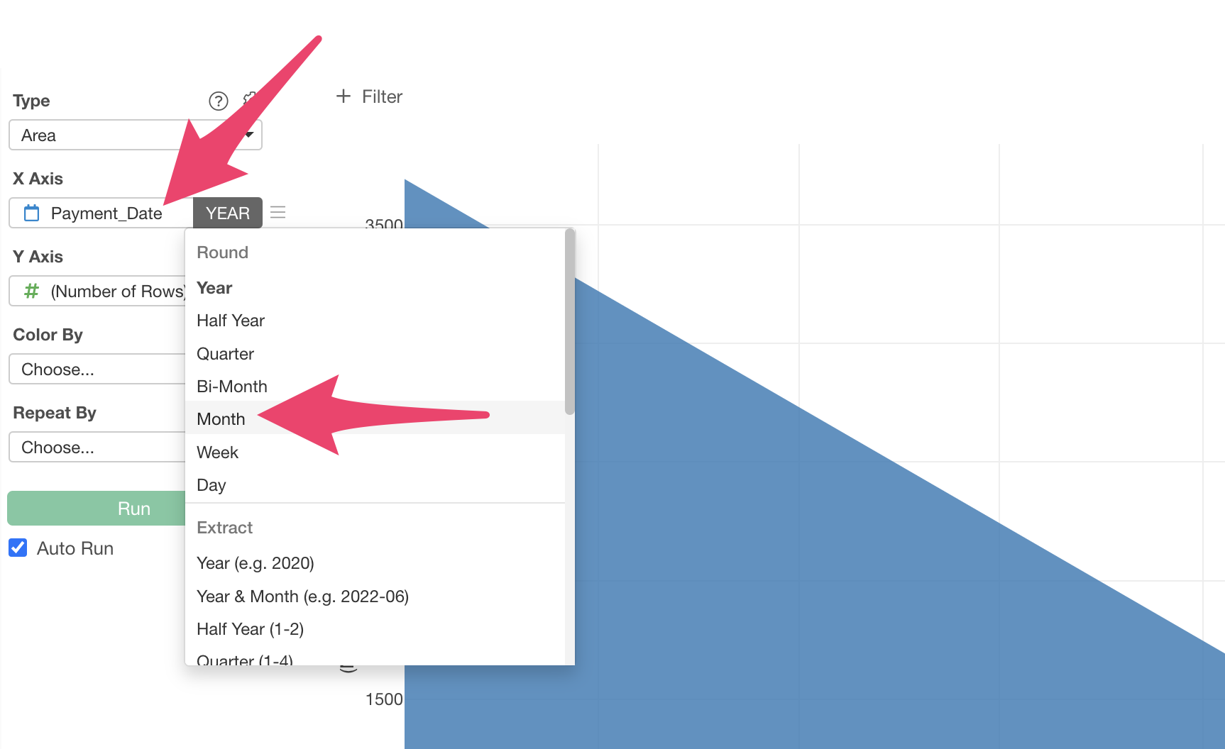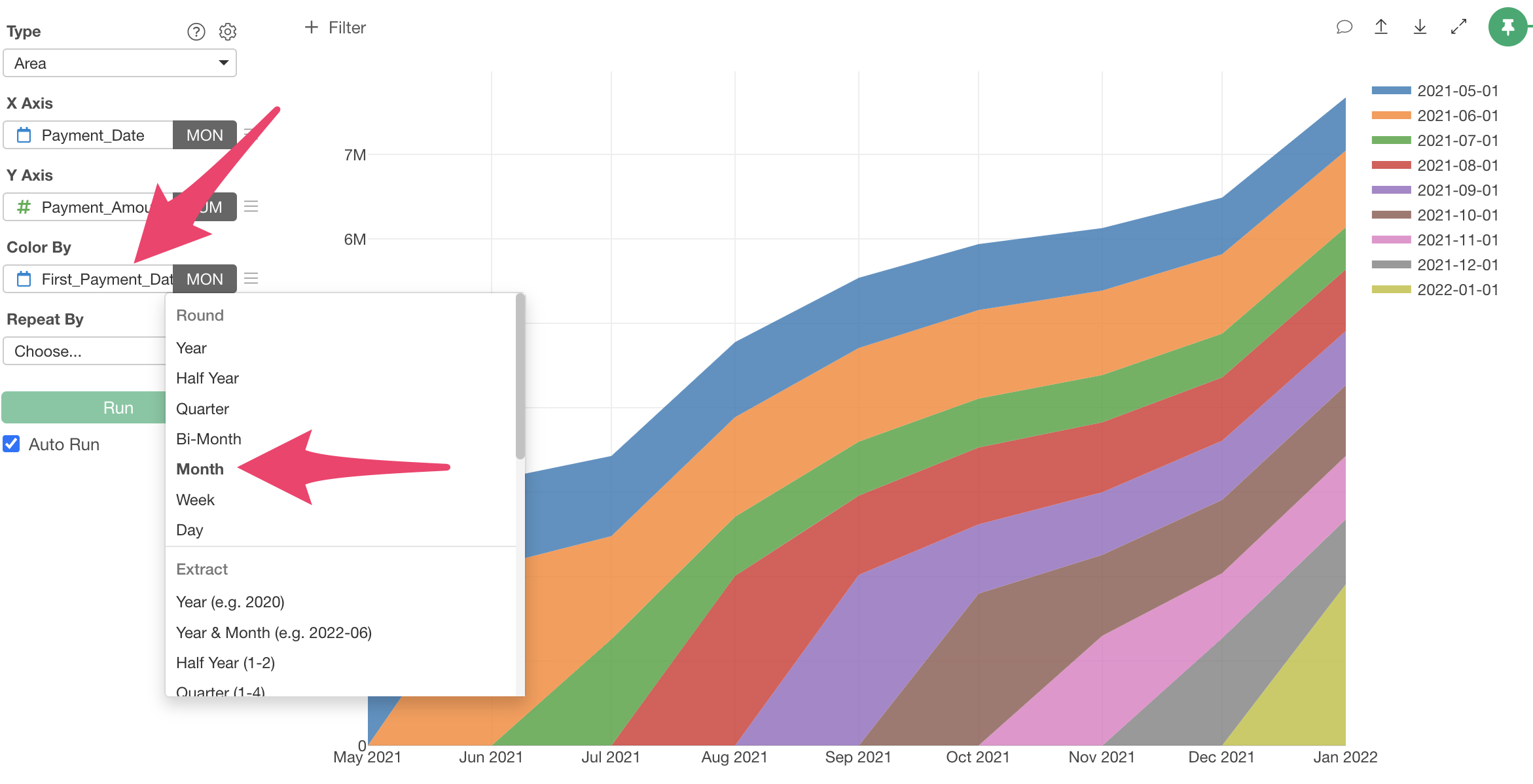 Next, select “Payment Date” for the X-axis and “Month” for the rounding process.