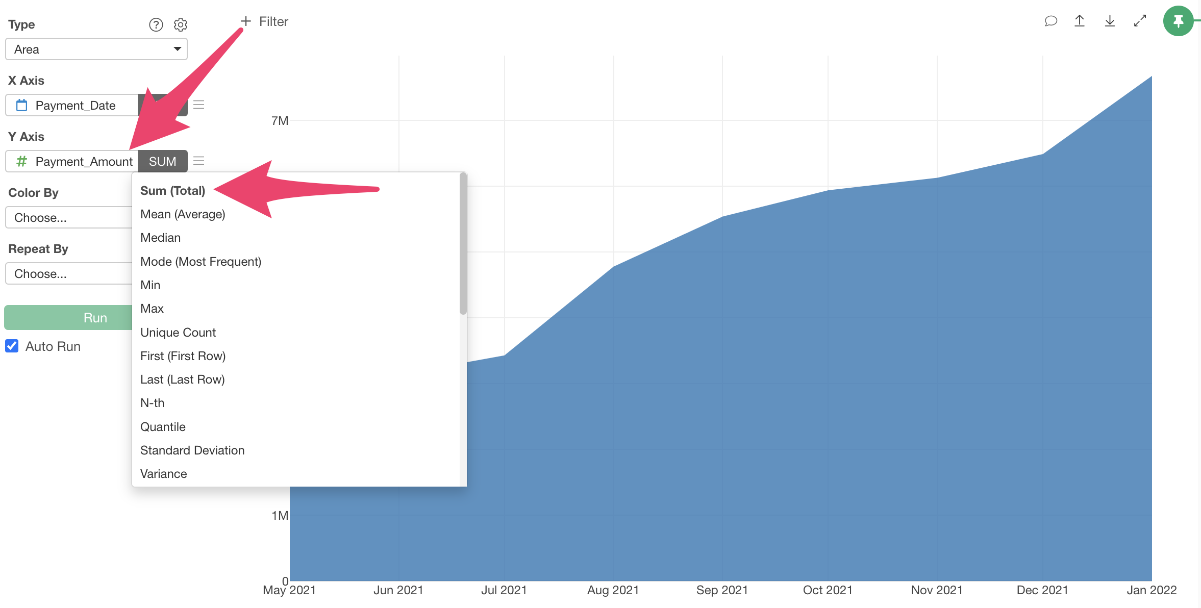 Select “Payment Amount” for the Y-axis and “Sum” for the aggregation function.