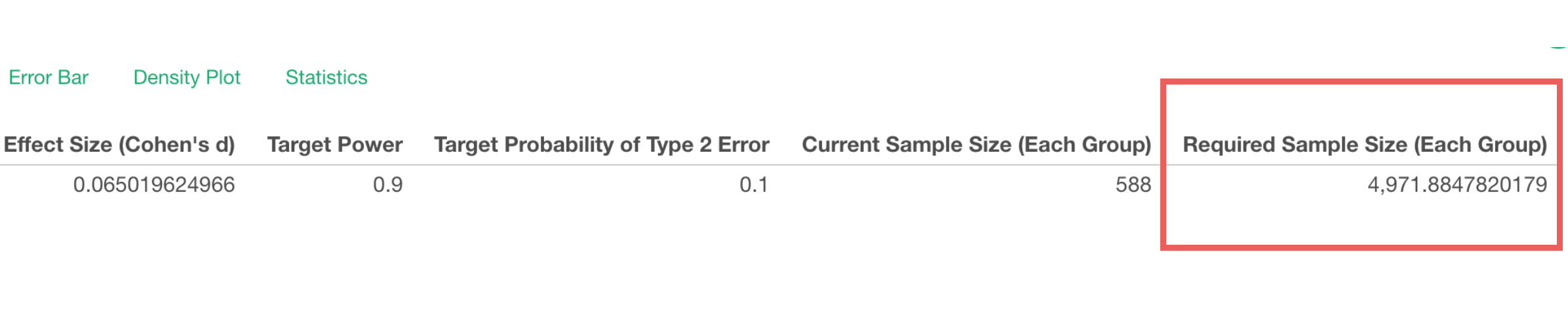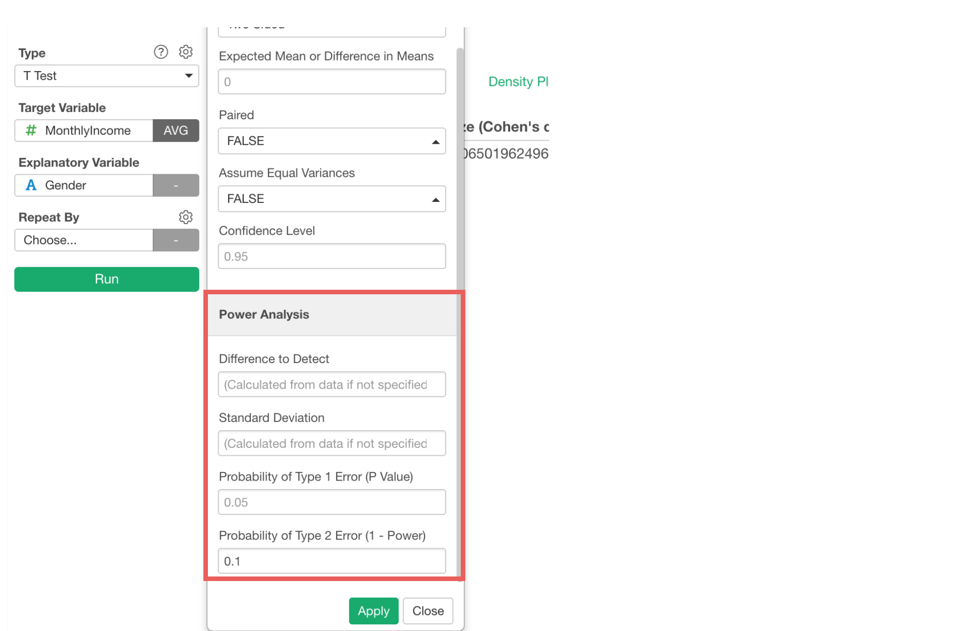 This is when you want to enable Power Analysis from the property. You can set up the Type 1 and/or Type 2 error thresholds and other parameters.