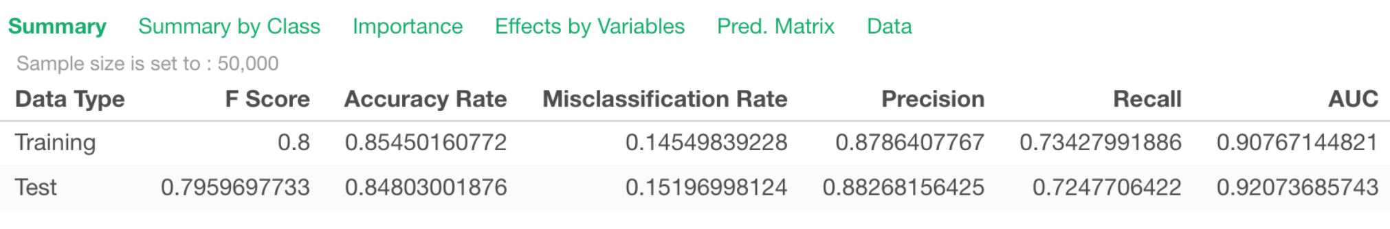 Enabling the Test Mode will split the data by the ratio that is set in the property and build a model based on the training data, then evaluate the model against the test data.